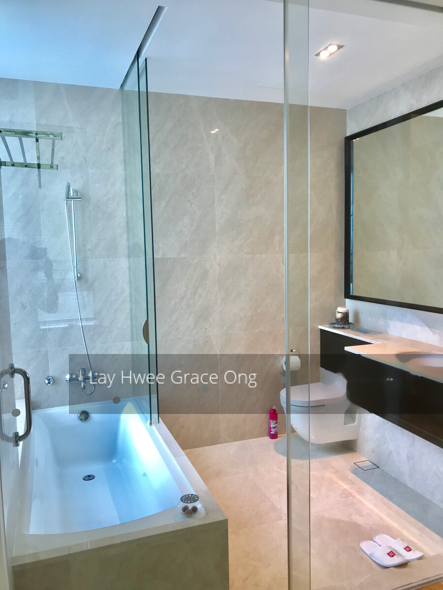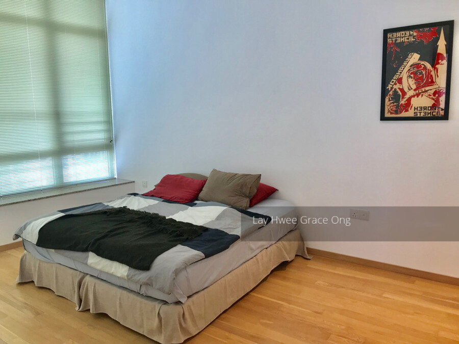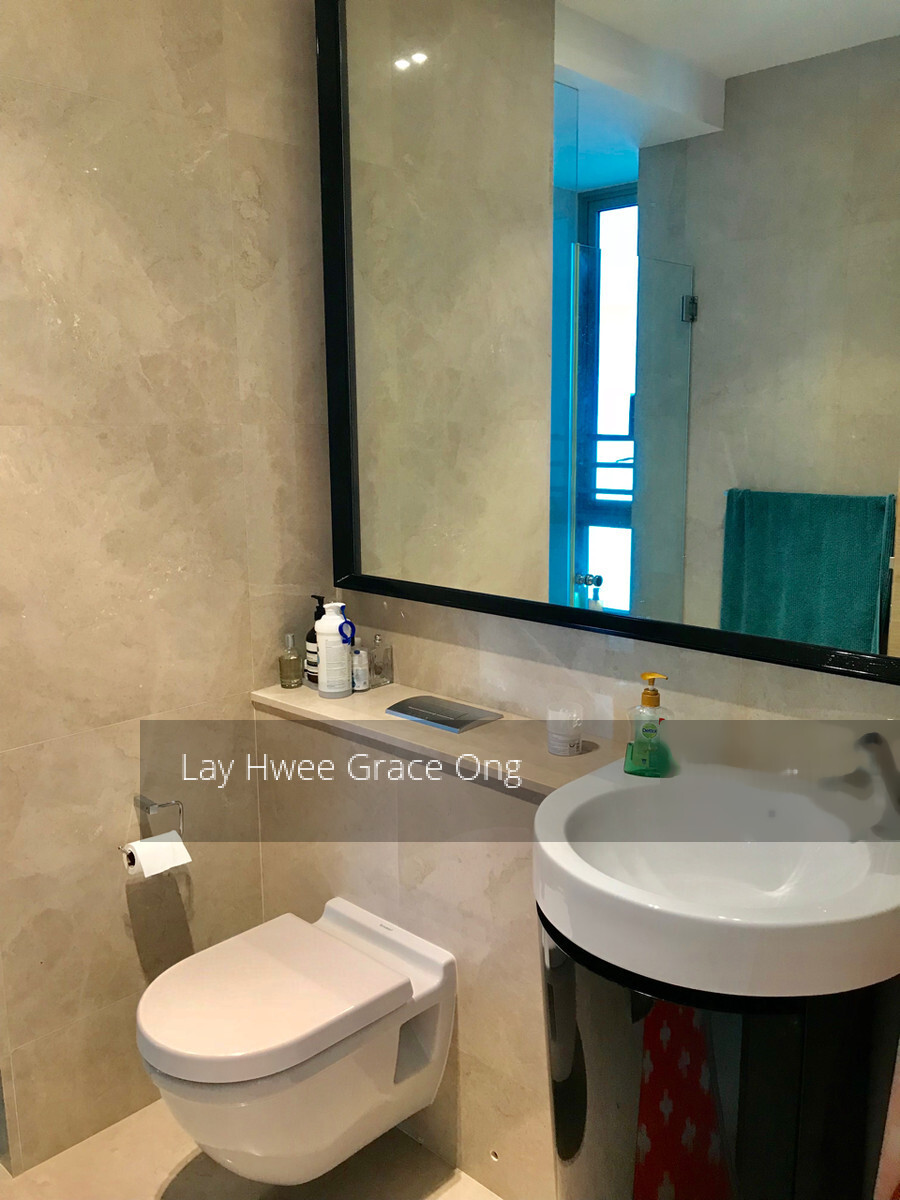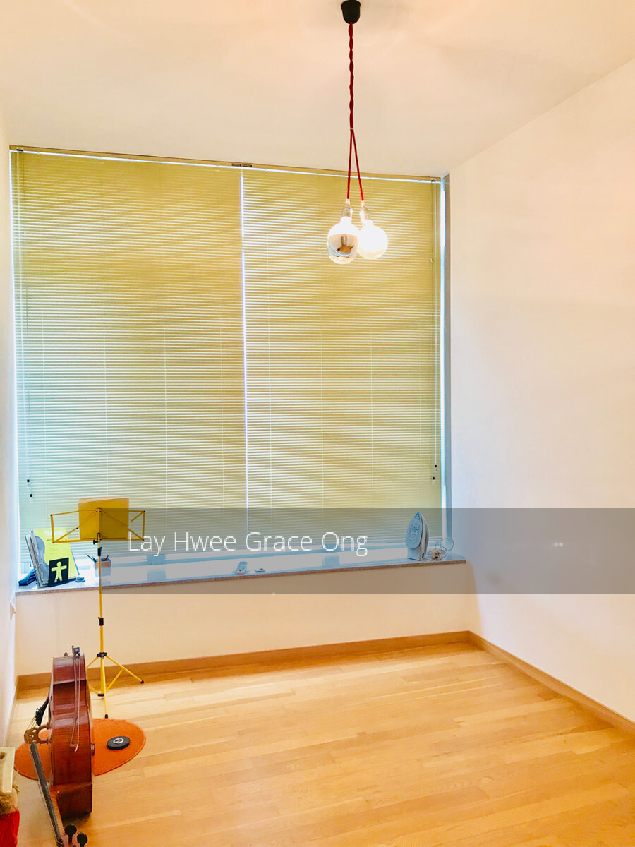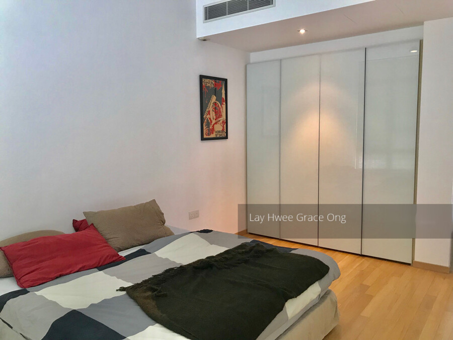The apartment boasts of branded white goods including Miele oven & microwave (never used), refrigerator and gas stove, newly replaced Miele washing machine and Miele Dryer. All appliances are in like-new͛ condition. The bedrooms are fitted with Luxaflex blinds, and the bay windows in both the bedrooms are fitted with custom made quality marble tops all make for a beautiful feature. The living room is also fitted with a crisp white custom made bookcase/storage unit providing a large amount of storage. The room is finished with an large mirror from SPACE.