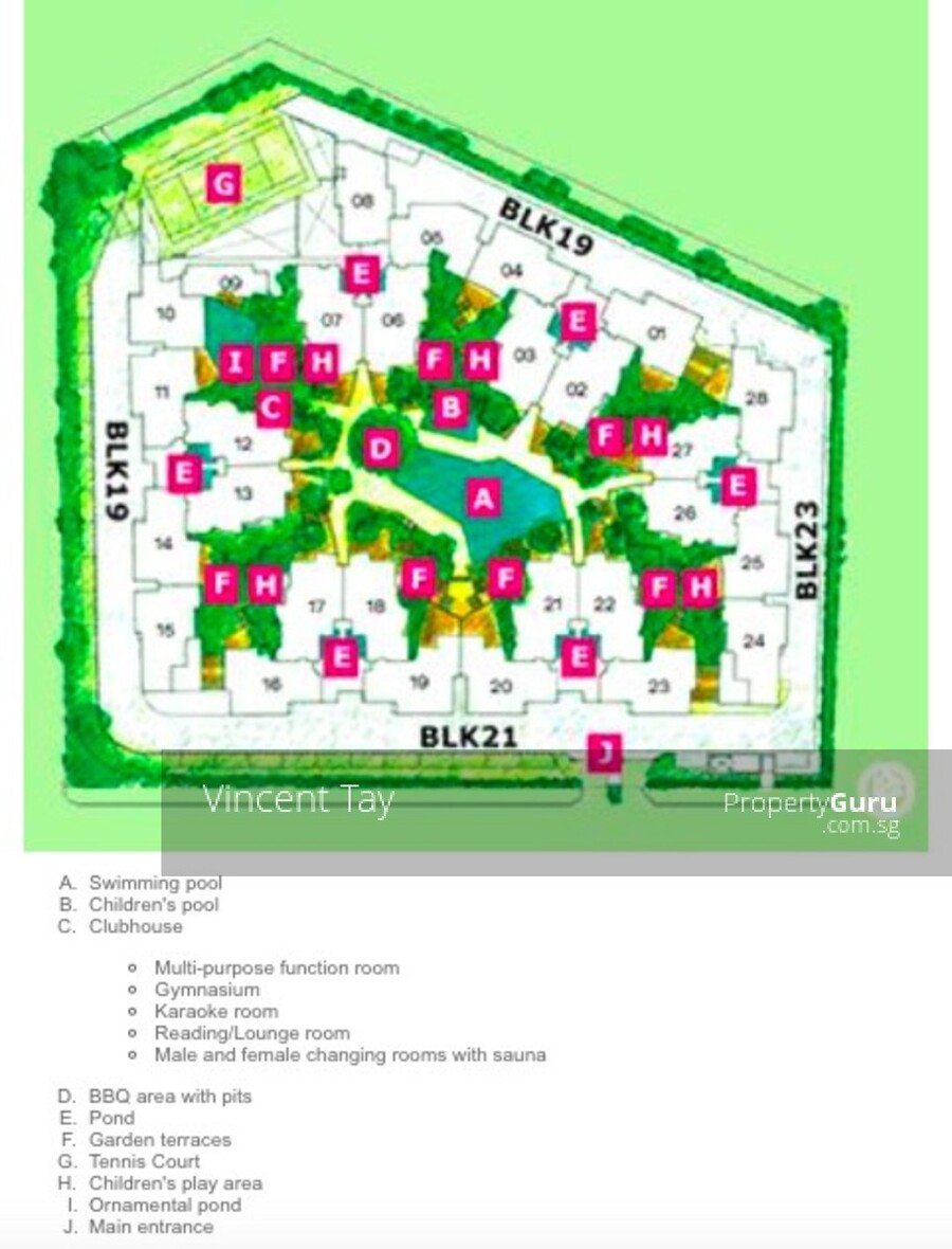 Facilities include a swimming pool, gymnasium, tennis court, clubhouse, karaoke room, sauna, barbecue pits and multi-purpose function room.