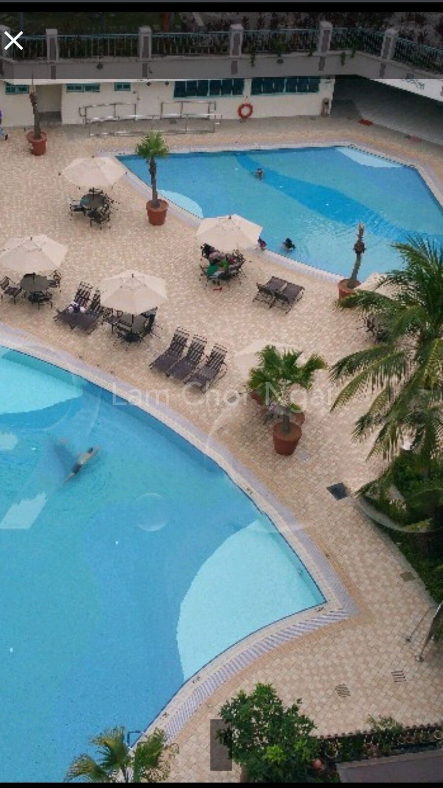 overlooking the pool and condo facilities