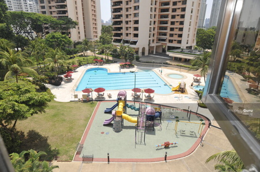** Balcony overlooks pool & greenery