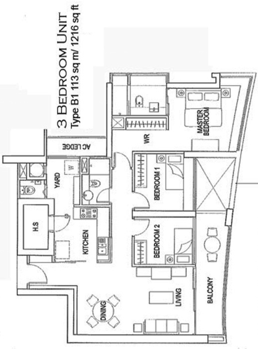 3 + study + big balcony. 1442sqft