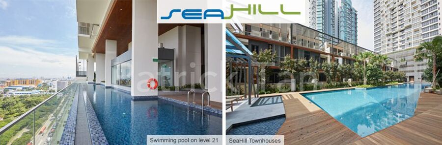 Facilities at Seahill include Sky Pool, Water Feature with Sunken Planter, 50M Lap Pool, Spa Island, Kids Pool, Dining Pavilion, Spa Pool, Massage Pavilion and Lounge Deck, Aqua Gym, Sea Mist Spa Pool, Function Deck, Meeting Pavilion, Jogging Track, Outdoor Fitness, Children Playground, Viewing Pavilion, Fitness Balcony and Plunge Pool.