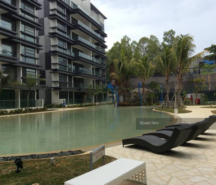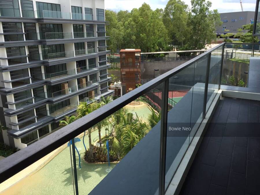 Beautiful ground floor with Balcony looking over water fixtures, greenery facing . Very cosy , privacy, and windy . Only project come with tree unique Pool , see to believe . Like resort living .Easy excess to express way PIE, ECP, TPE. Beside Japanese School , and mins drive to Changi Business Park, 4th University, Airport. Don't miss it.