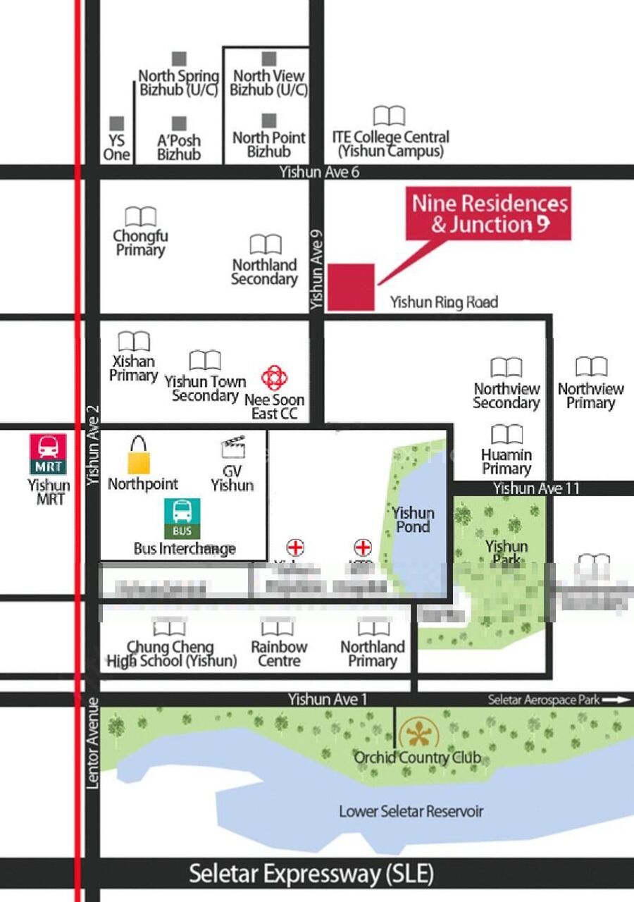 Nine Residences is close to NS13 Yishun MRT Station and not far from several Schools such as Northland Secondary School, Yishun Town Secondary School and Xishan Primary