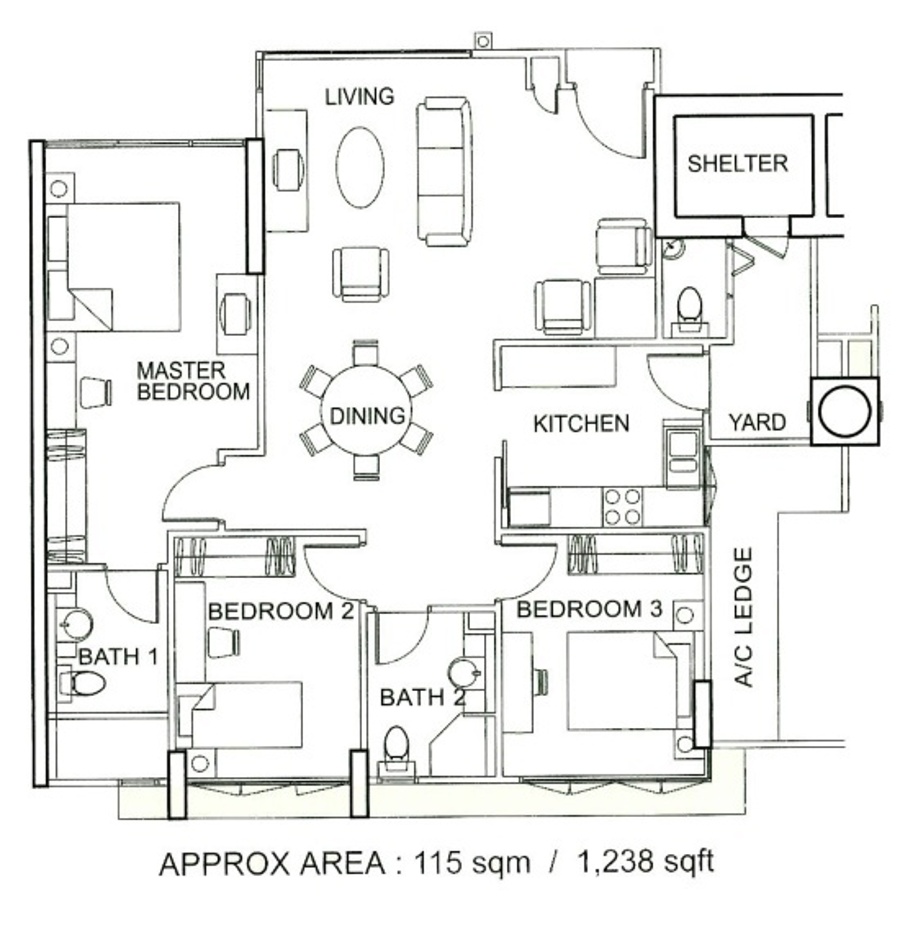 Spacious 3 bedder with balcony
